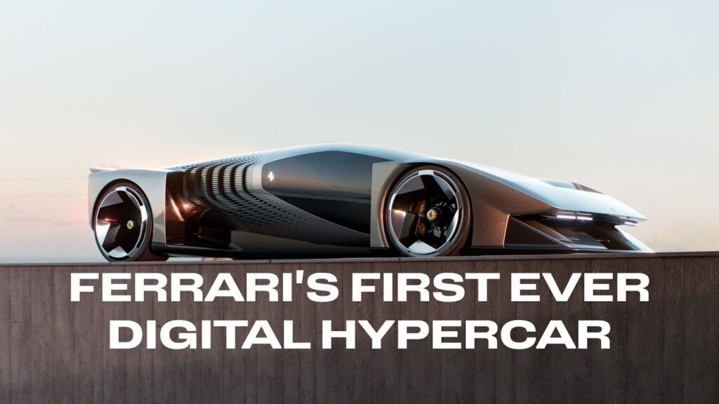 Ok, respiriamo. Non c’è una vettura reale da guidare, non c’è un V12 che romba: è un progetto virtuale, ideato dallo Styling Centre di Ferrari, con doppia fusoliera, canale centrale, design generativo, tutto quanto hi-tech.
