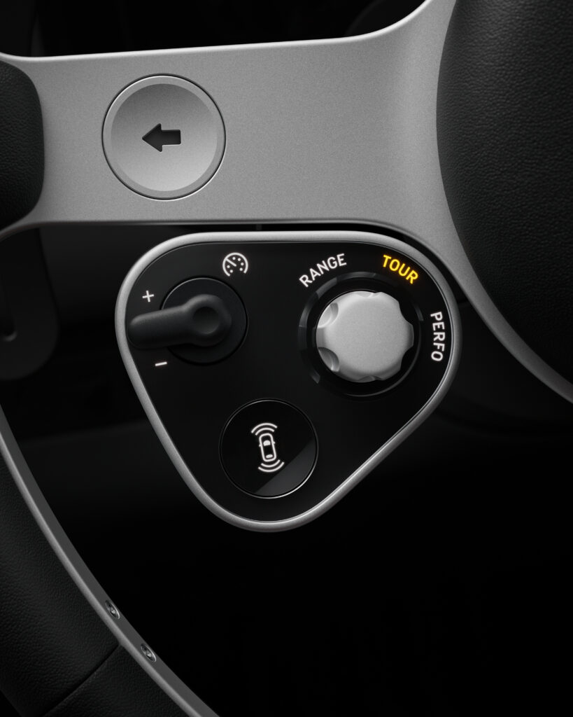 Le palette? Non cambiano marcia, ovviamente, (i motori sono elettrici), ma gestiscono il Torque Shift Engagement – una sorta di “gradino” di coppia che simula lo scatto di un cambio – e l’intensità della frenata rigenerativa. In pratica, chi guida continua a “giocare” con le mani come su una termica, ma controllando il comportamento dell’elettrico.